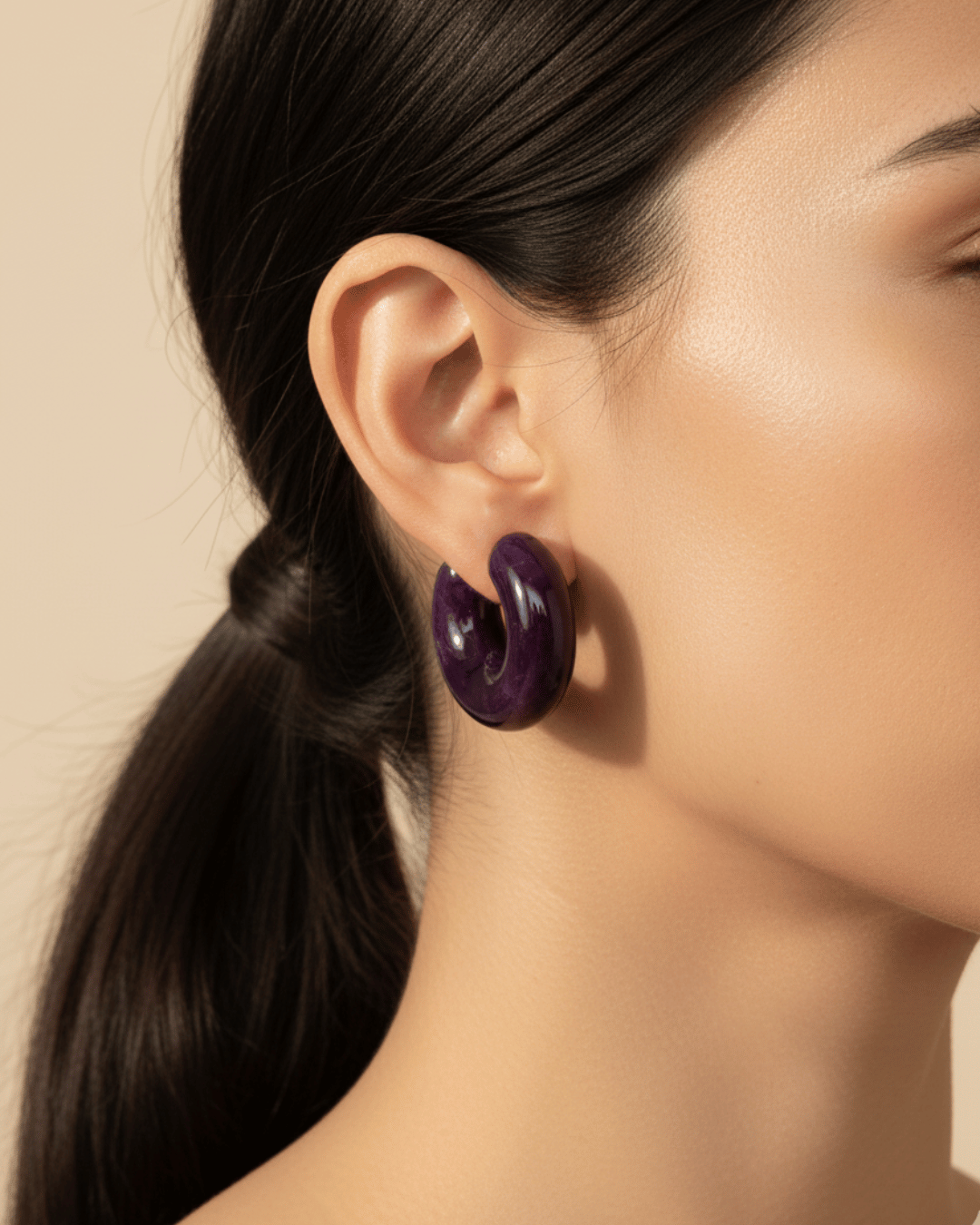 Κρεμαστά Σκουλαρίκια Κρίκοι από Ακρυλικό σε Βυσσινί Απόχρωση
